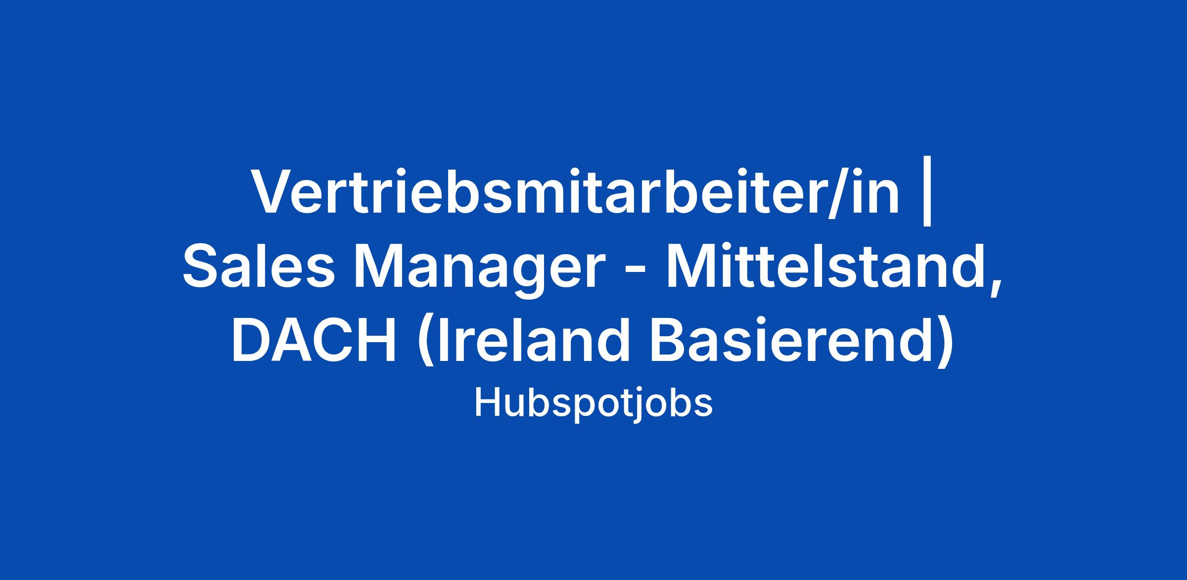 Vertriebsmitarbeiter/in | Sales Manager - Mittelstand, DACH (Ireland Basierend)