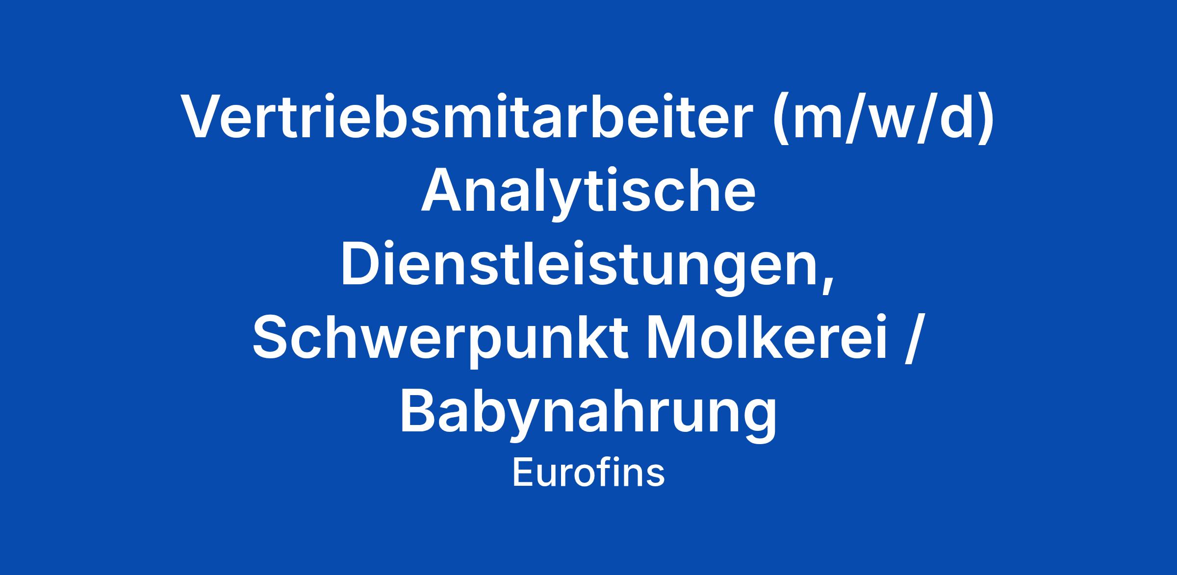 Vertriebsmitarbeiter (m/w/d) Analytische Dienstleistungen, Schwerpunkt Molkerei / Babynahrung