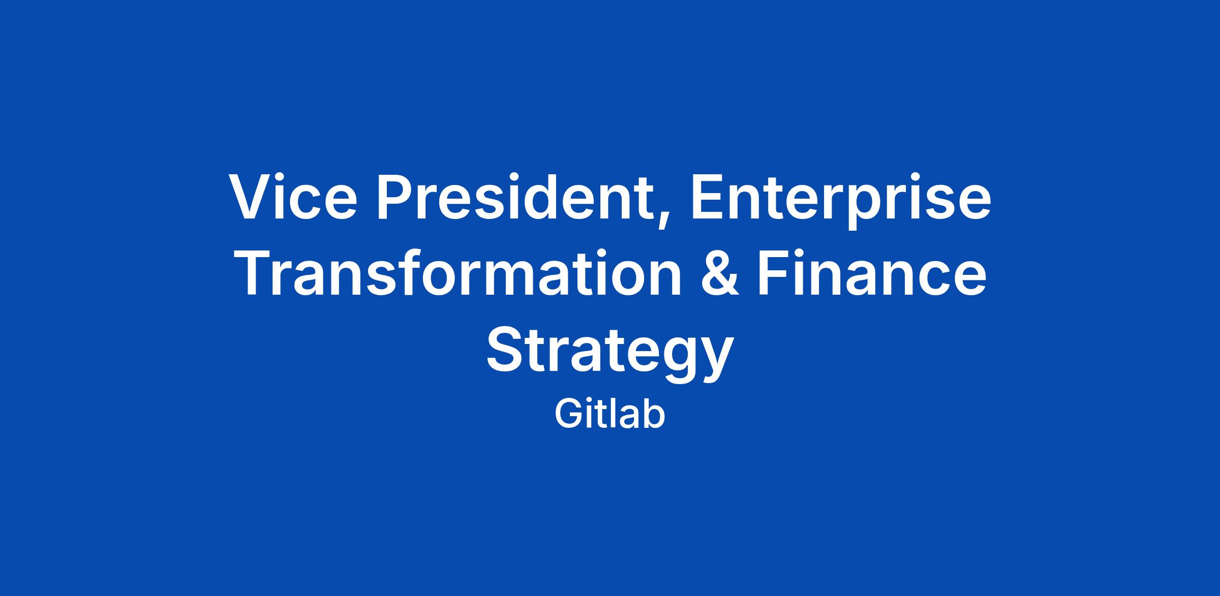 Vice President, Enterprise Transformation & Finance Strategy