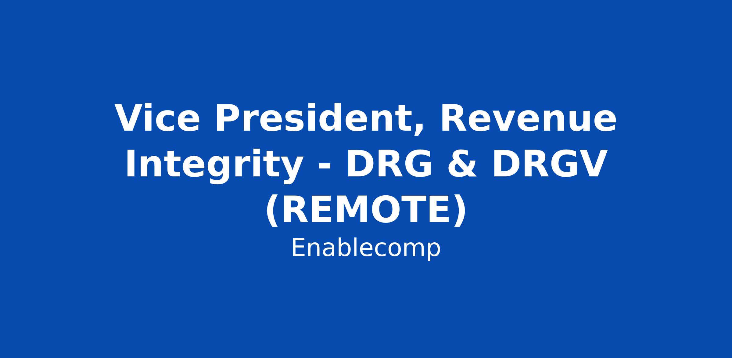 Vice President, Revenue Integrity - DRG & DRGV (REMOTE)