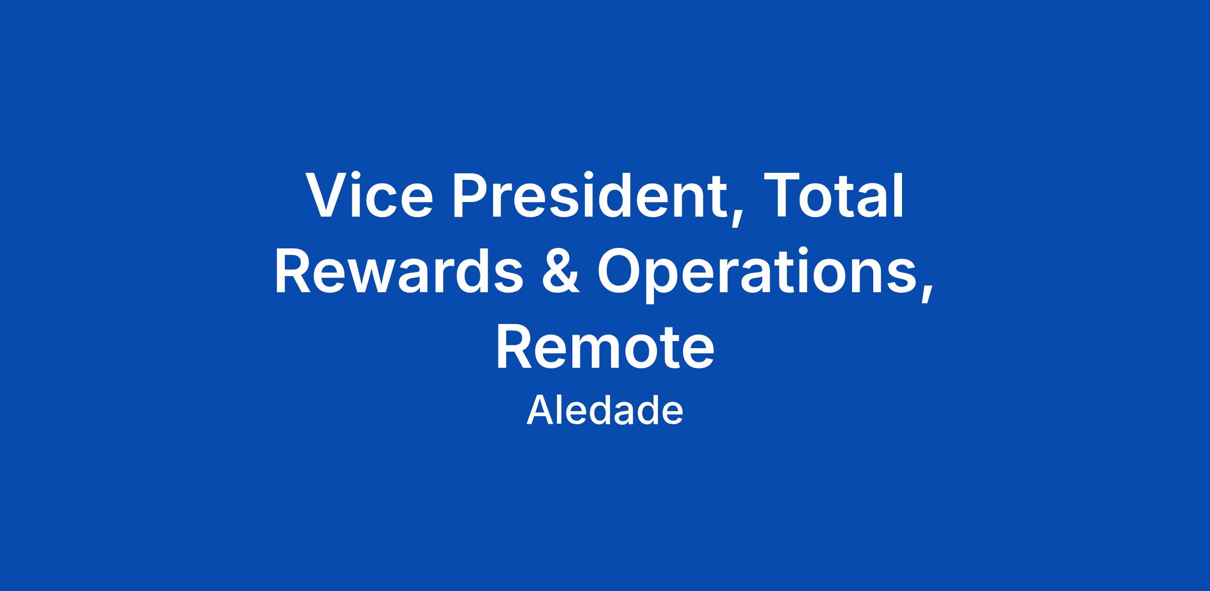 Vice President, Total Rewards & Operations, Remote