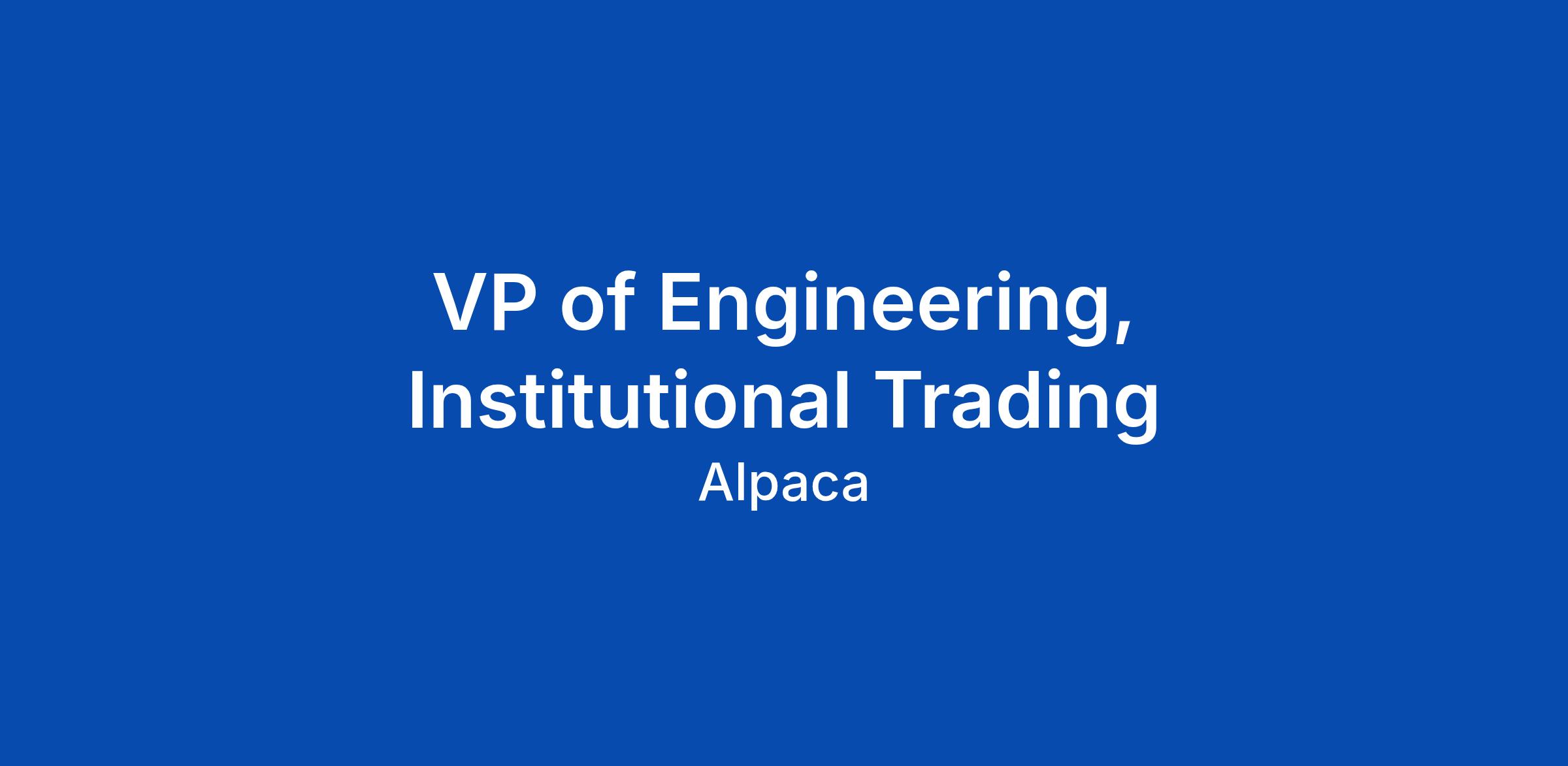 VP of Engineering, Institutional Trading