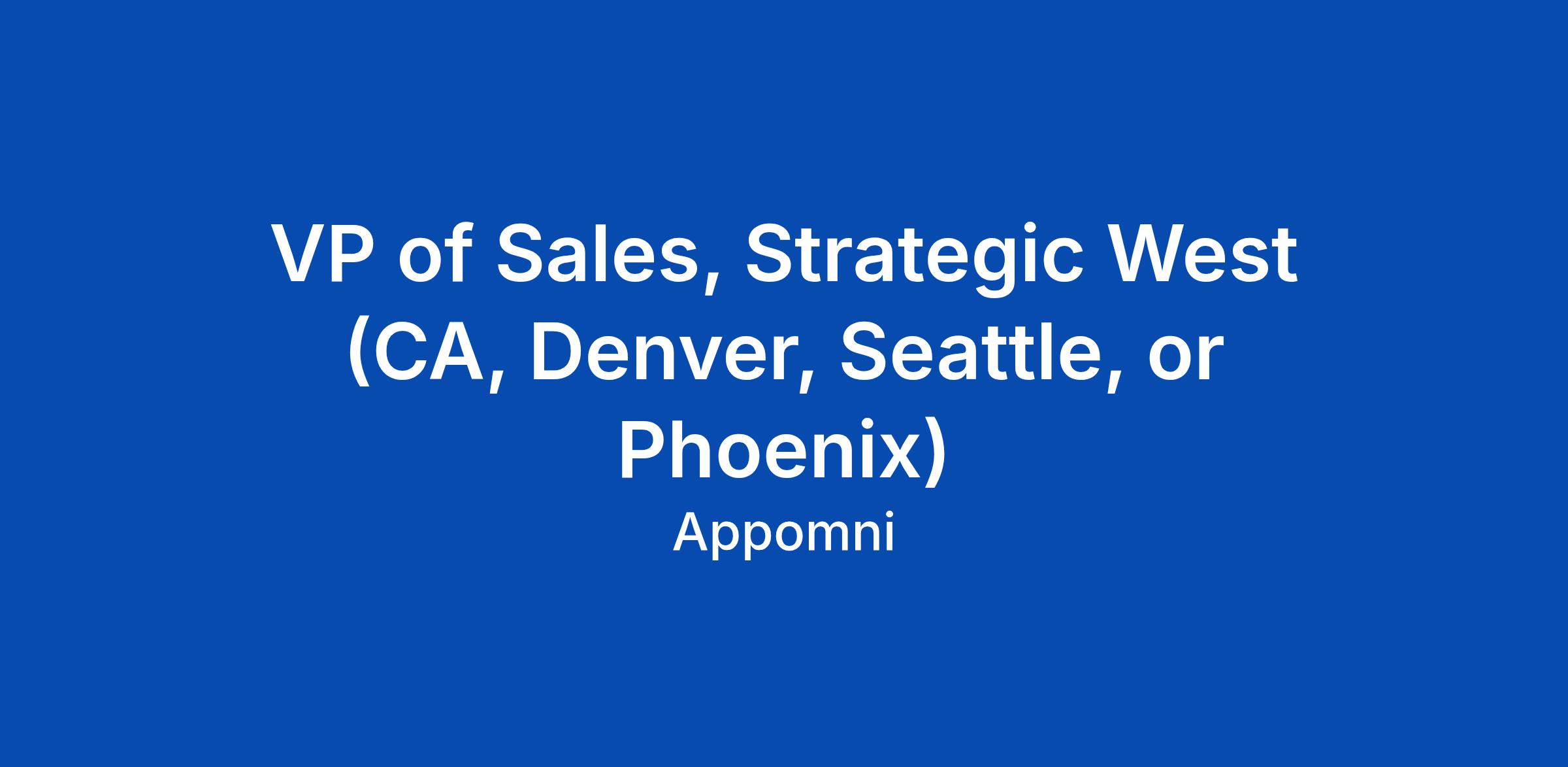 VP of Sales, Strategic West (CA, Denver, Seattle, or Phoenix)