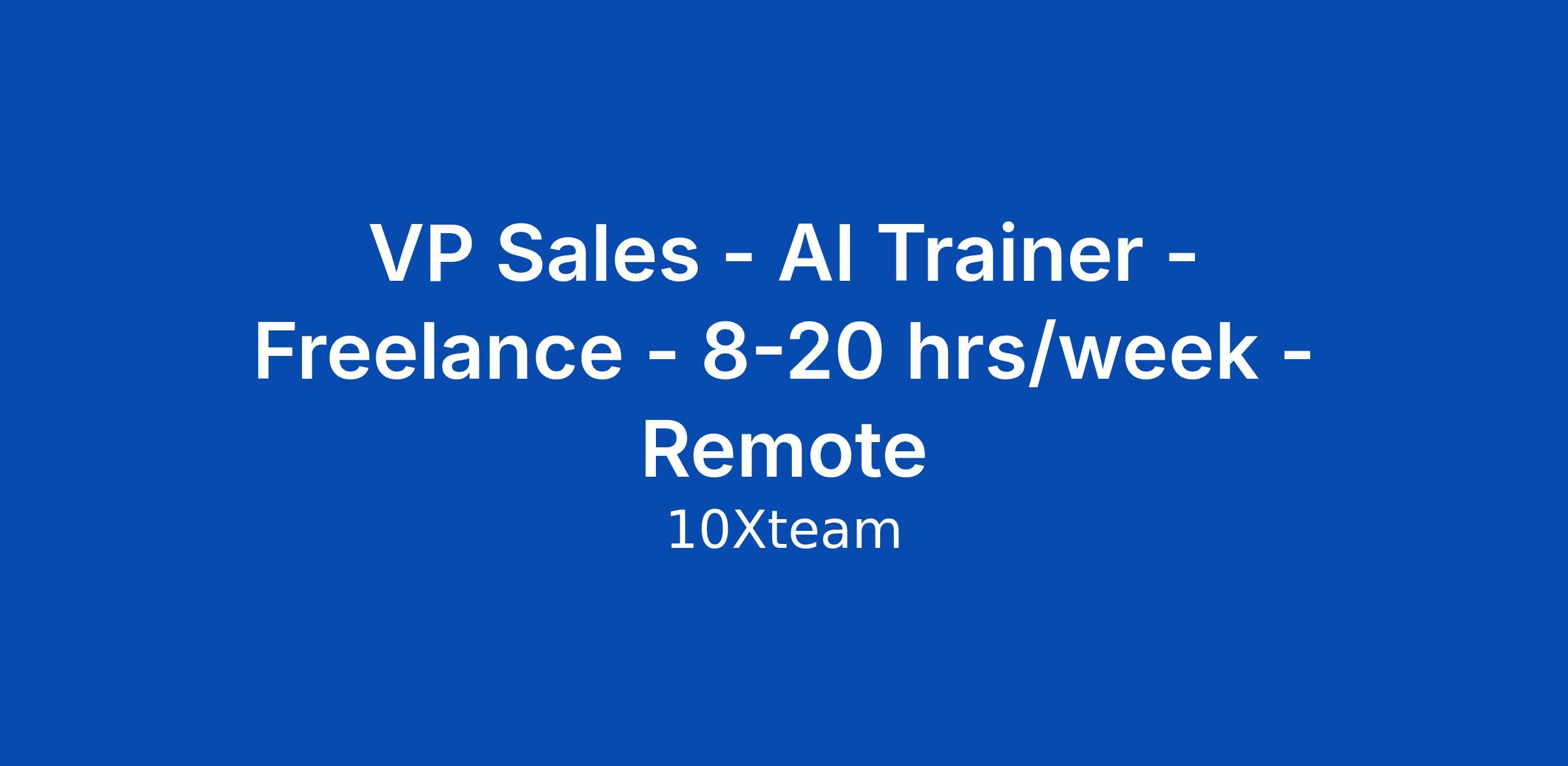 Updated: 16 April 2026 Freelance | 8–20 hrs/week | Remote (EU/UK) VP Sales – AI Trainer (Freelance | 8–20 hrs/week | Remote EU/UK) Are you an accomplished sales leader with a deep understanding of AI-driven business development and go-to-market strategy? Do you want to help shape how advanced AI models learn to sell and drive value? Apply your real-world sales expertise to support cutting-edge AI in understanding and excelling at strategic selling. About the Role 10x.team connects expert freelancers with leading AI labs building the next generation of models. We're searching for experienced sales executives based in the EU or UK to elevate the accuracy, depth, and relevance of AI-powered sales systems. What You Will Do - Review and refine AI-generated outputs related to sales leadership, pipeline management, customer engagement, and enterprise deal strategies - Evaluate AI responses for realism, business relevance, and adherence to effective sales processes - Draft real-world scenarios and sales case studies based on your professional experience - Generate case variations from distinct perspectives (e.g., VP Sales, sales manager, client, or product stakeholder) - Identify and impro