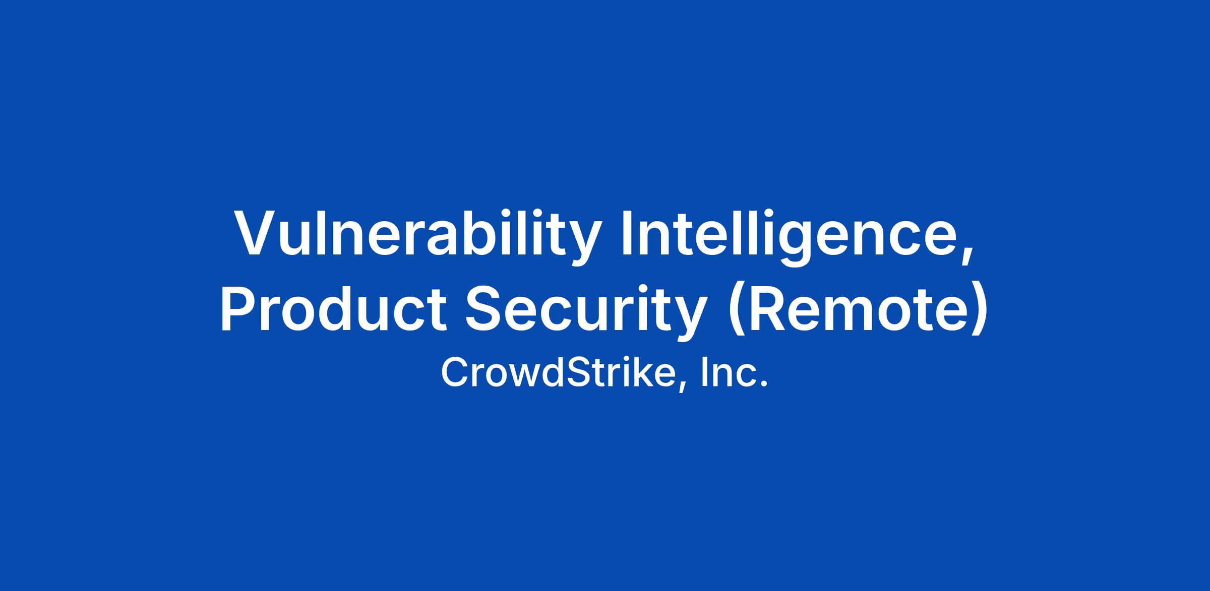 Help us protect CrowdStrike and its customers from the most advanced threats! CrowdStrike's Product Security team breaks the mold of traditional internal security and focuses on active threats to CrowdStrike's products. As a Product Security Engineer on the Vulnerability Intelligence team, you will monitor for emerging vulnerabilities, deploy large-scale security/monitoring systems for asset visibility, utilize and provide feedback on the Falcon platform's latest features, and build tooling to solve complex security challenges.